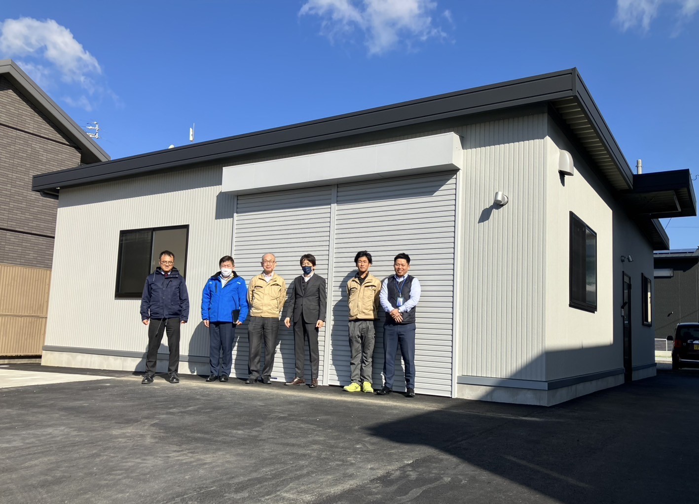 ↓建設して下さった中村組様と当社の社長との完成記念写真